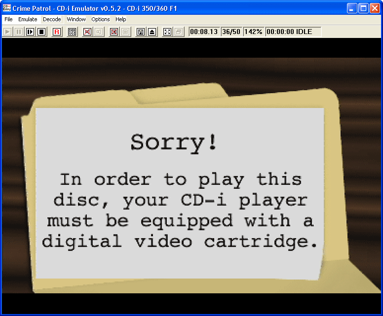 From the Disc Most CD-i Games have "Abstract", "Bibliographic" and "Copyright" details on the softwares disc itself, any interesting information in these files can be found below. Abstract: "Crime Patrol" is a full motion, digital video, arcade style game in which the player is given the opportunity to move up in the ranks of a local police force. At each level the player will meet their new partner then set off to face a variety of criminals in shoot outs taking place in many different locations. Starting as a Rookie Patrol Officer, the player will have to battle thieves, gangs and armed robbers. Then, it's on to Undercover where the player must foil car thieves, mobsters and drug dealers. Next on this law enforcement career track is the SWAT Team. Here the player must shoot it out with bank robbers, drug dealers and a raucous bunch of bikers. Finally, it's on to the Delta Force and rescue missions involving international terrorists. With each level, the players skills are challenged as the missions get more difficult and more deadly. If successful, the player will be invited to join his Delta Force team members on two more harrowing missions. Bibliographic: Produced by American Laser Games, Capitol Multimedia, Inc., and Philips Interactive Media Copyright: (c) 1993, 1994 American Laser Games, (c) 1995 Philips Interactive Media