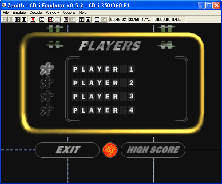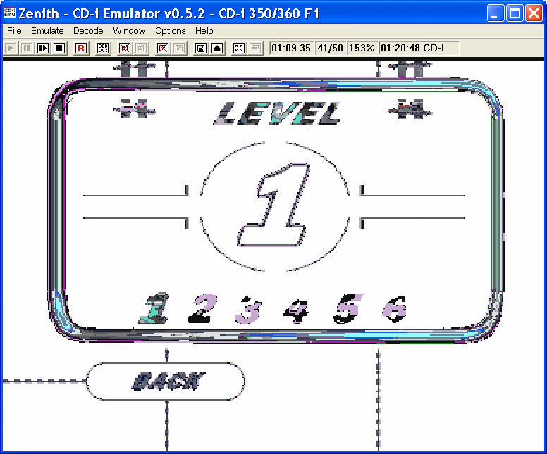 CD-i Emulator Compatibility: This section covers crucial details concerning performance of this specific game under emulation through CD-i Emulator. It will state the CD-i Player Rom used during the test, what version of CD-i Emulator was used, which program the Disc Image was created from, specifications of the test PC and also provide screenshots of the emulator in action. Also included is an account of the test and most importantly if the game is playable through CD-i Emulator. Rather than an exhaustive list of tests with various ROMS and different PC rigs it's hoped that this section gives some insight into the progress of CD-i Emulator. For the most recent updates to CD-i Emulator and compatibility it's suggested you visit the CD-i Emulator Homepage.